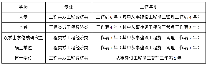 2、有工程類或工程經濟類大專以上學歷并從事建設工程項目施工管理工作滿20年。