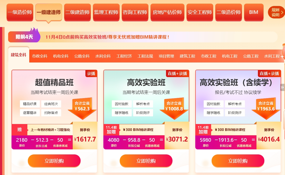 購(gòu)買(mǎi)一建課程最高立省3000+