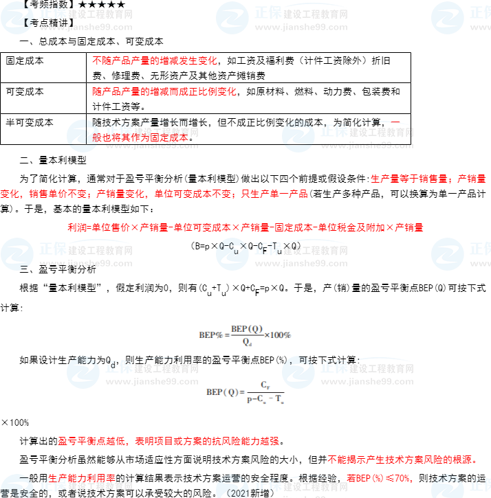 工程經(jīng)濟(jì)知識(shí)點(diǎn)5:盈虧平衡分析