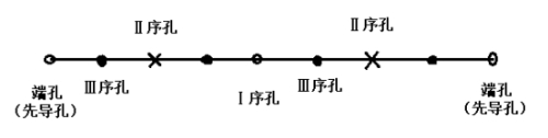 對于固結(jié)和帷幕灌漿而言,不同排的次序問題解決后,還存在著同一排中不同孔之間的先后順序問題。這時,我們的施工原則就是先稀后密的“分序加密”。