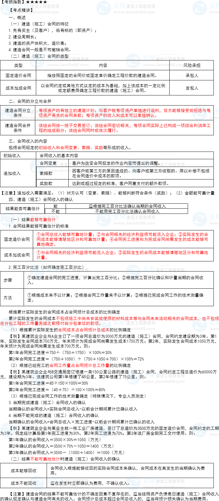 一級建造師考試工程經(jīng)濟知識點10:建造(施工)合同收入的核算