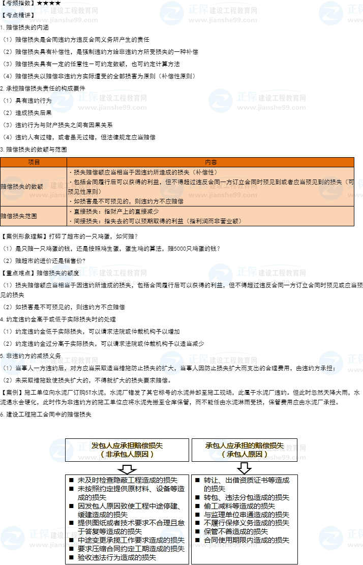 一建工程法規(guī)知識點12:建設(shè)工程賠償損失的規(guī)定