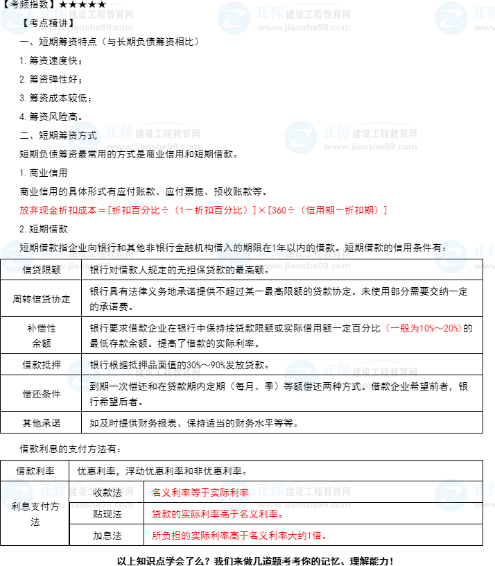一級建造師考試工程經(jīng)濟知識點13:短期籌資的特點和方式