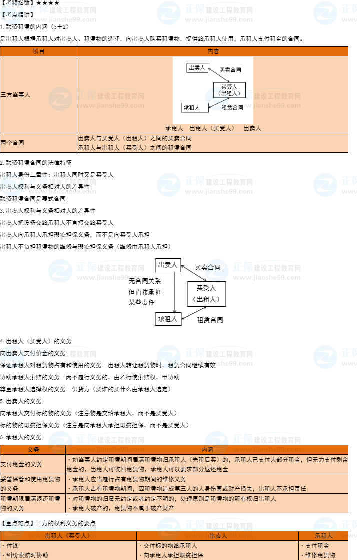 一建工程法規(guī)知識(shí)點(diǎn)17:融資租賃合同