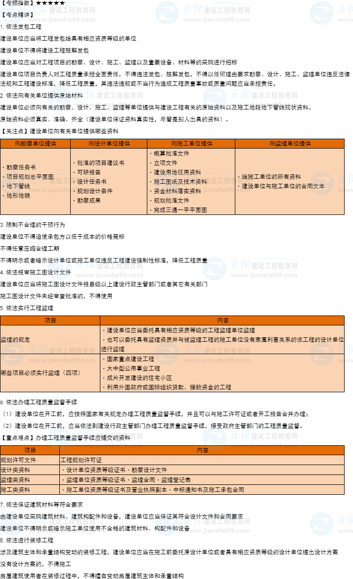 一建工程法規(guī)知識點(diǎn)24:建設(shè)單位的質(zhì)量責(zé)任和義務(wù)