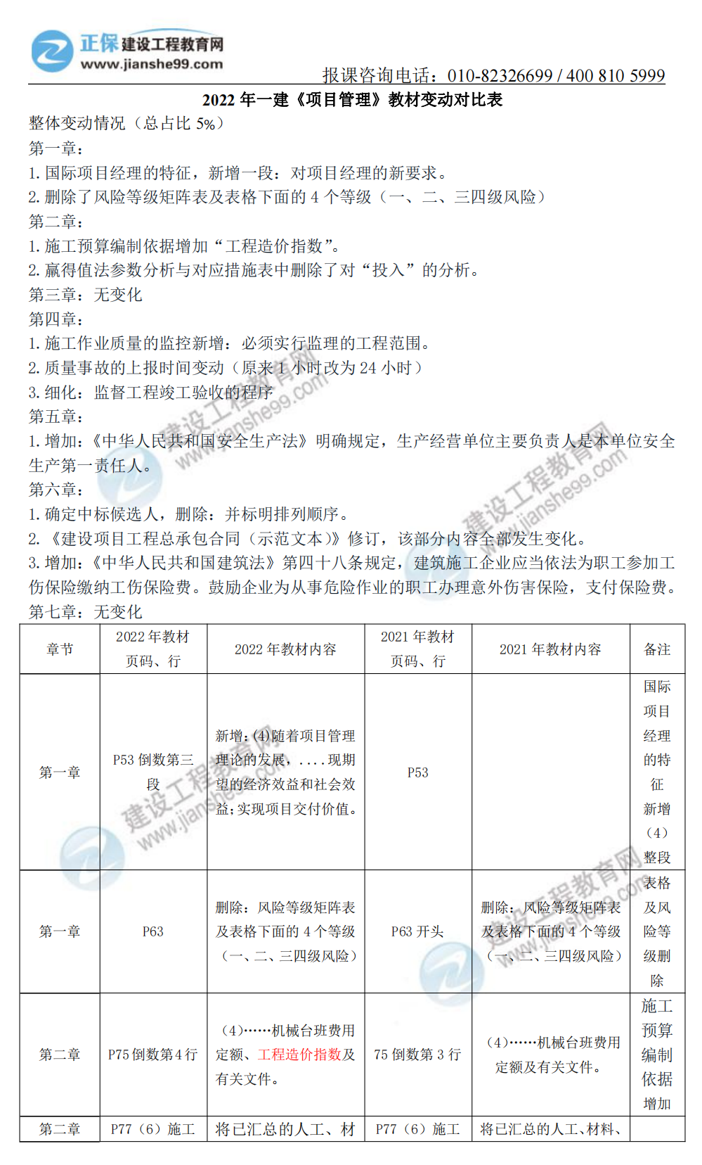 2022年一建《項(xiàng)目管理》新舊教材對(duì)比 變化約5%
