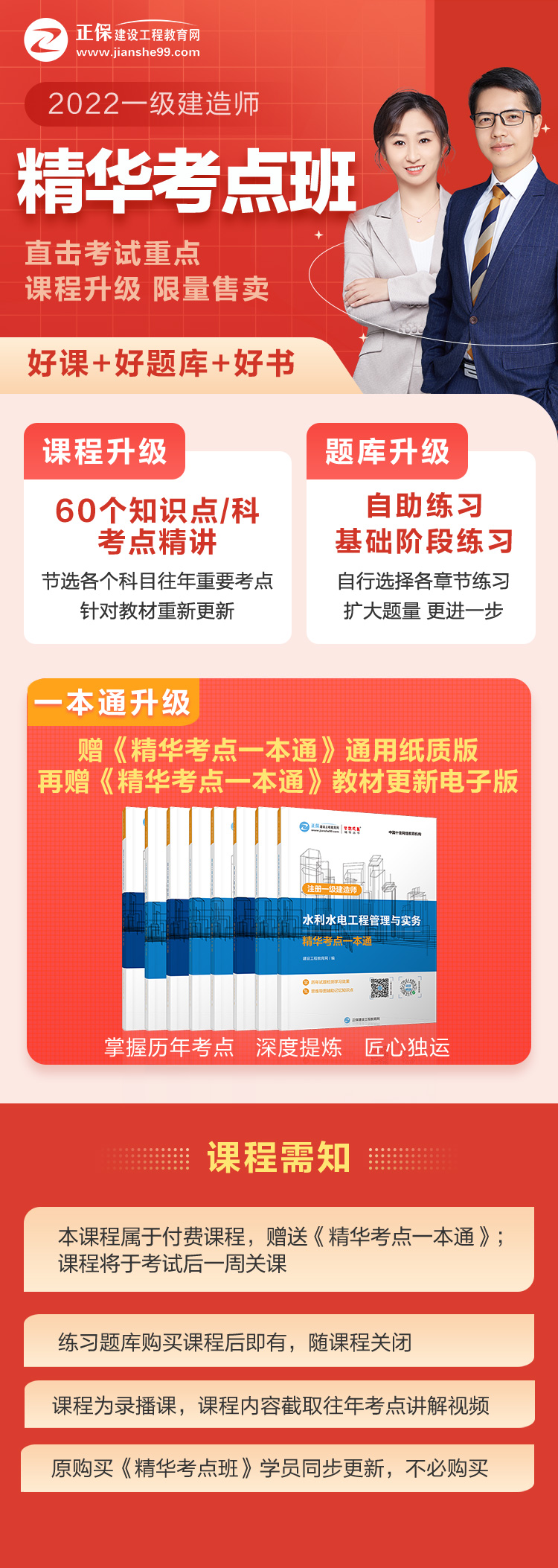 針對22年教材變化,建設(shè)工程教育網(wǎng)對原有精華考點班(60個考點講解視頻)替換為教材更新版內(nèi)容。