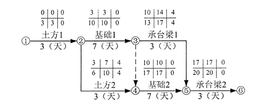 ①→②→③→④→⑤→⑥,計(jì)劃工期為:3+7+7+3=20天