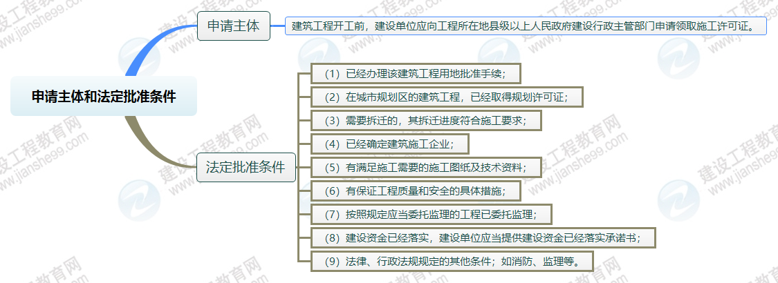 三、施工許可證的申請主體和法定批準(zhǔn)條件-思維導(dǎo)圖