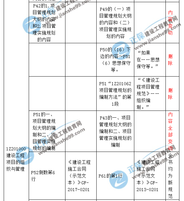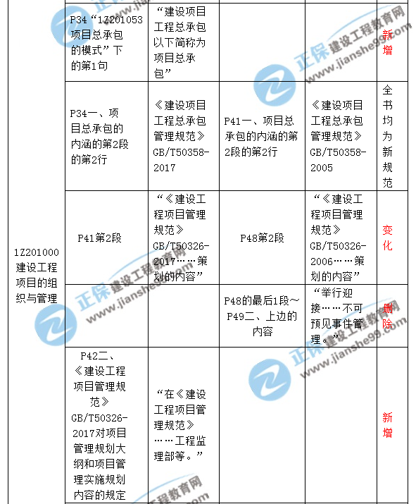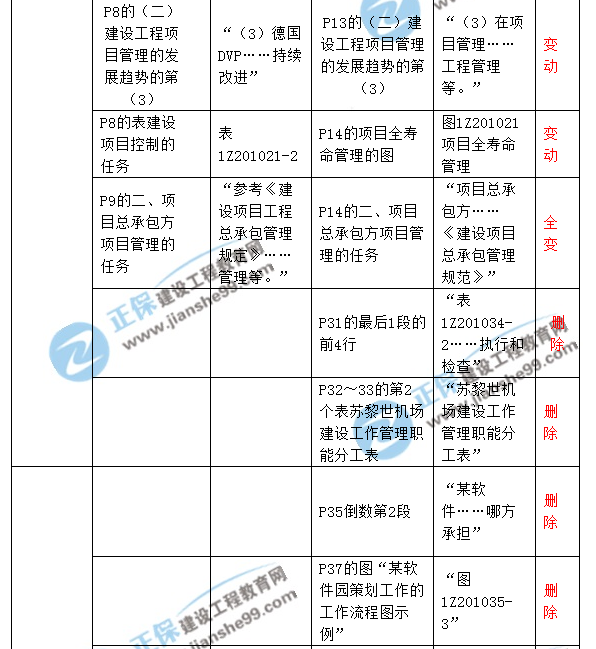 2018一級建造師《建設(shè)工程項(xiàng)目管理》新舊教材對比解析匯總