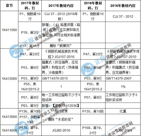 2017年一級建造師新版教材已經(jīng)發(fā)布,建設工程教育網(wǎng)集結老師作出以下2017年一級建造師《市政實務》新舊教材對比,供大家掌握教材對比,把握考試大綱。2017年一級建造師教材預定正在火爆進行中,先訂先得>>