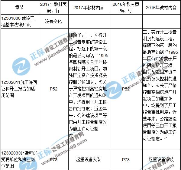 2017年一級(jí)建造師《法規(guī)》新舊教材對(duì)比