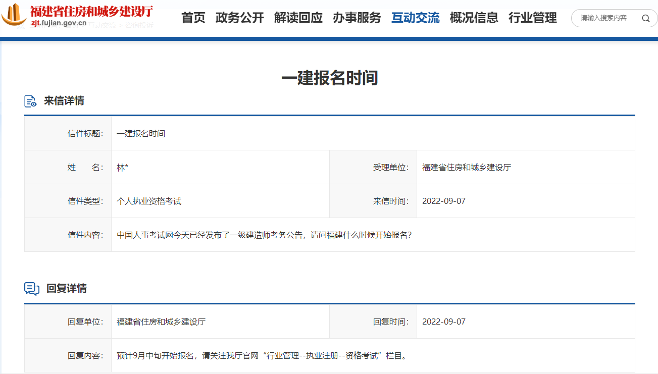 近日,各個省份的一建考生都在等待著一級建造師報名考務(wù)安排的發(fā)布。其中一福建考生在福建省住房和城鄉(xiāng)建設(shè)廳詢問:“中國人事考試網(wǎng)今天已經(jīng)發(fā)布了一級建造師考務(wù)公告,請問福建什么時候開始報名? ”