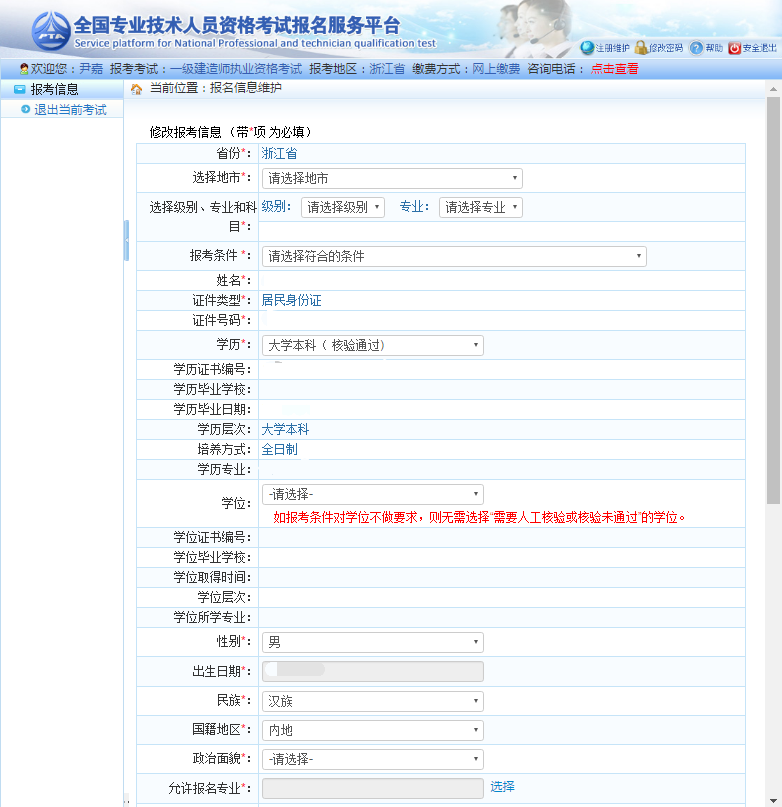 4. 報名信息確認(rèn)前應(yīng)認(rèn)真核查并保證證件類別、證件號碼、姓名、報考級別、報考專業(yè)、科目信息、電話、工作單位、電子郵箱、通訊地址和郵政編碼等準(zhǔn)確無誤。報名信息確認(rèn)后,報考人員不得自行修改。