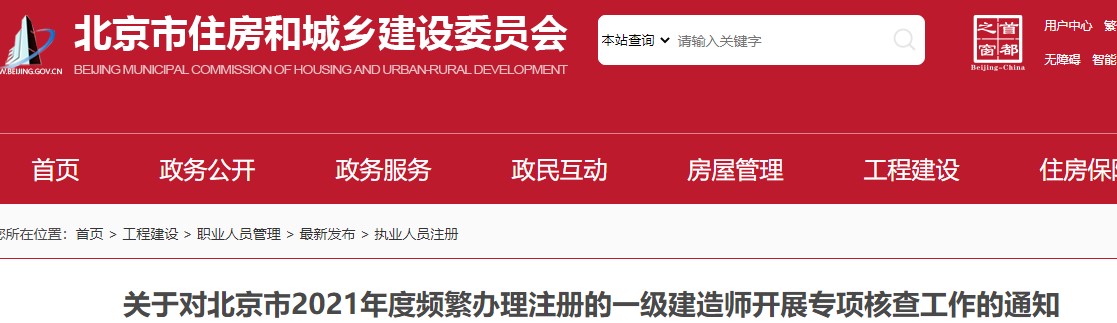 關(guān)于對北京市2021年度頻繁辦理注冊的一級建造師開展專項(xiàng)核查工作的通知