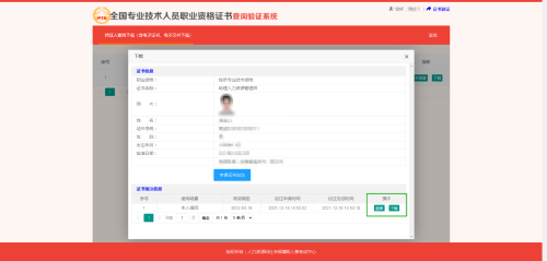 點(diǎn)擊[同意]按鈕后,即可進(jìn)入持證人查詢下載(含電子證書(shū)、電子文件下載)頁(yè)面。