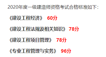 一級(jí)建造師考試各科目合格標(biāo)準(zhǔn)為其總分的60%。