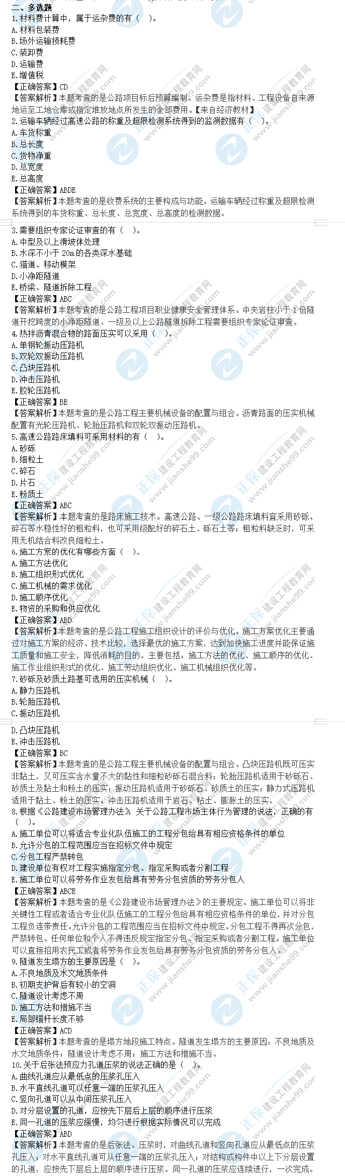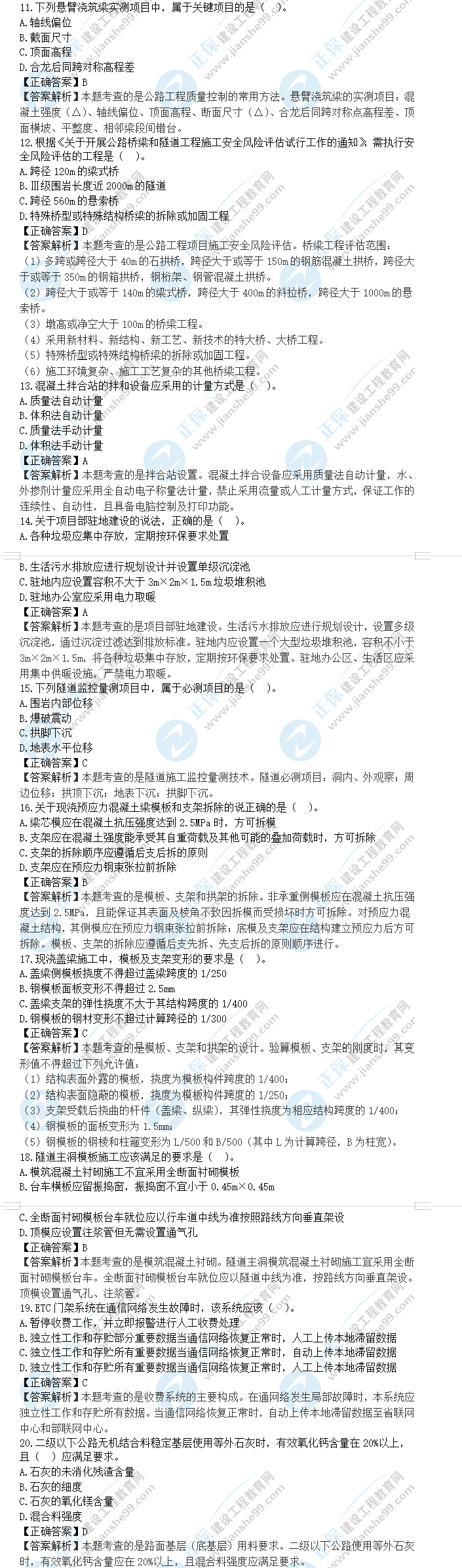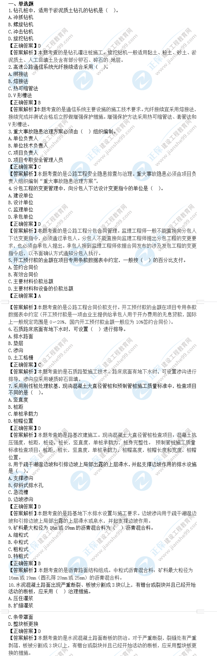 2023年一級建造師公路工程真題及答案解析選擇題