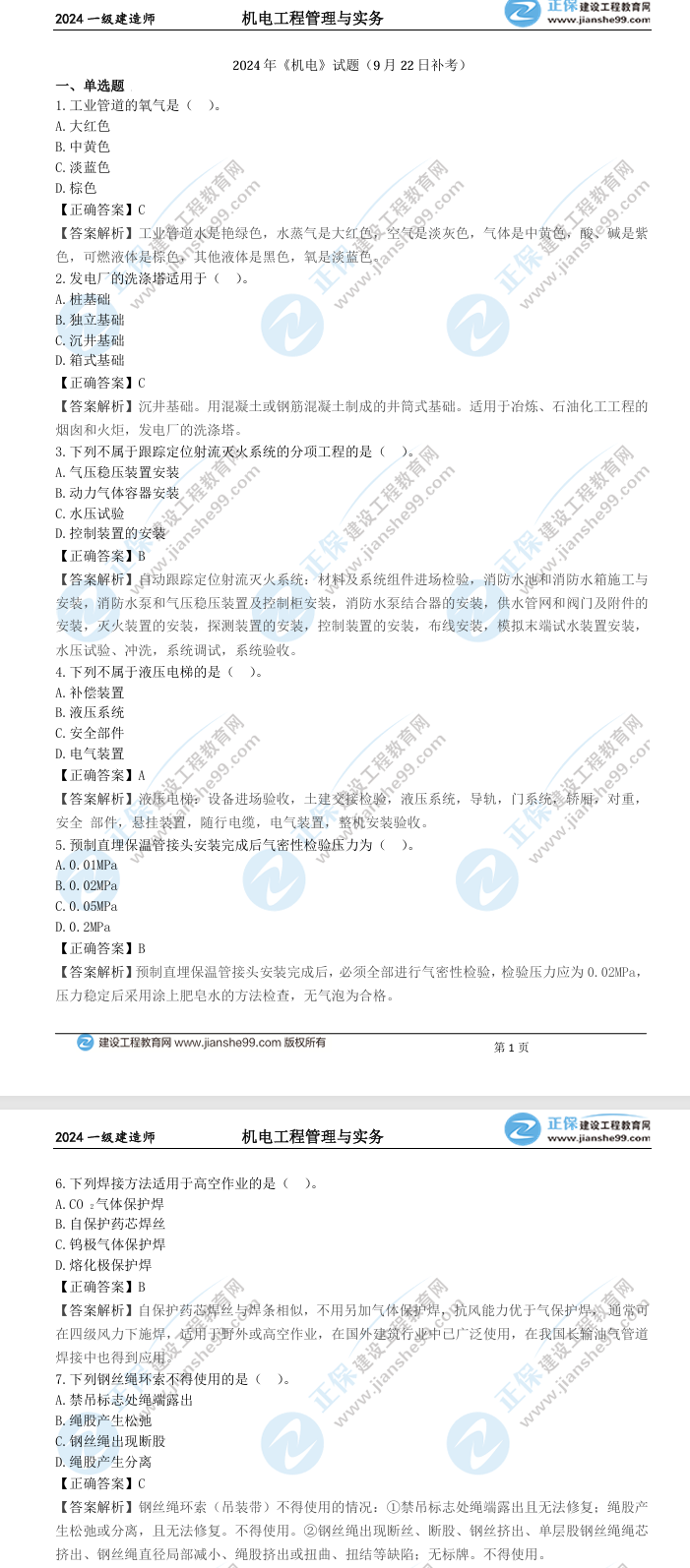 2024年一建機(jī)電真題解析