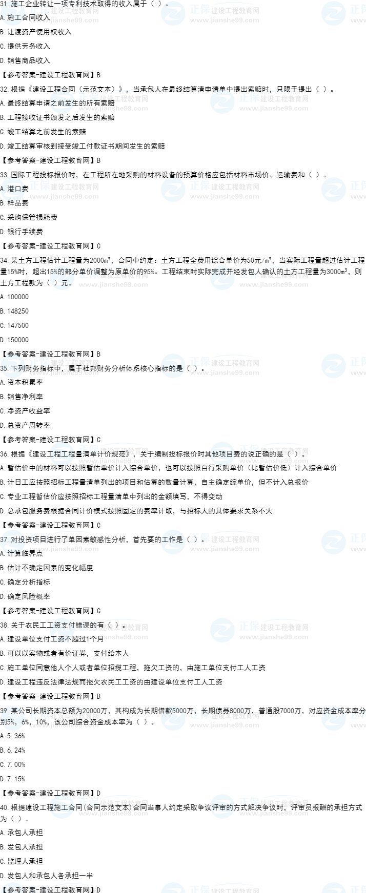 2022年一級(jí)建造師工程經(jīng)濟(jì)補(bǔ)考試題及答案31-40題。建設(shè)工程教育網(wǎng)考后將會(huì)根據(jù)學(xué)員反饋,及時(shí)匯總2022年一級(jí)建造師工程經(jīng)濟(jì)補(bǔ)考試題及答案分享給大家,并且會(huì)及時(shí)做出答案解析,希望能為廣大一建考生朋友帶來(lái)幫助。
