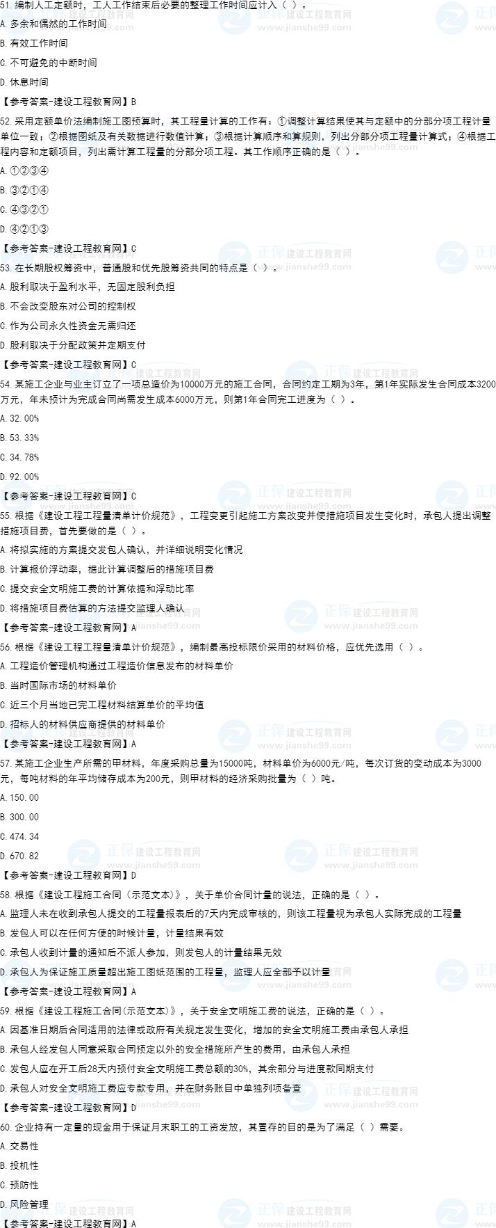 2022年一級(jí)建造師工程經(jīng)濟(jì)補(bǔ)考試題及答案51-60題。建設(shè)工程教育網(wǎng)考后將會(huì)根據(jù)學(xué)員反饋,及時(shí)匯總2022年一級(jí)建造師工程經(jīng)濟(jì)補(bǔ)考試題及答案分享給大家,并且會(huì)及時(shí)做出答案解析,希望能為廣大一建考生朋友帶來(lái)幫助。