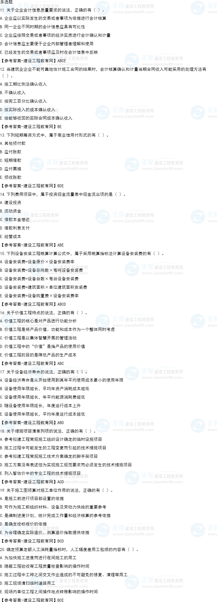 2022年一級(jí)建造師工程經(jīng)濟(jì)補(bǔ)考試題及答案71-80題。建設(shè)工程教育網(wǎng)考后將會(huì)根據(jù)學(xué)員反饋,及時(shí)匯總2022年一級(jí)建造師工程經(jīng)濟(jì)補(bǔ)考試題及答案分享給大家,并且會(huì)及時(shí)做出答案解析,希望能為廣大一建考生朋友帶來幫助。