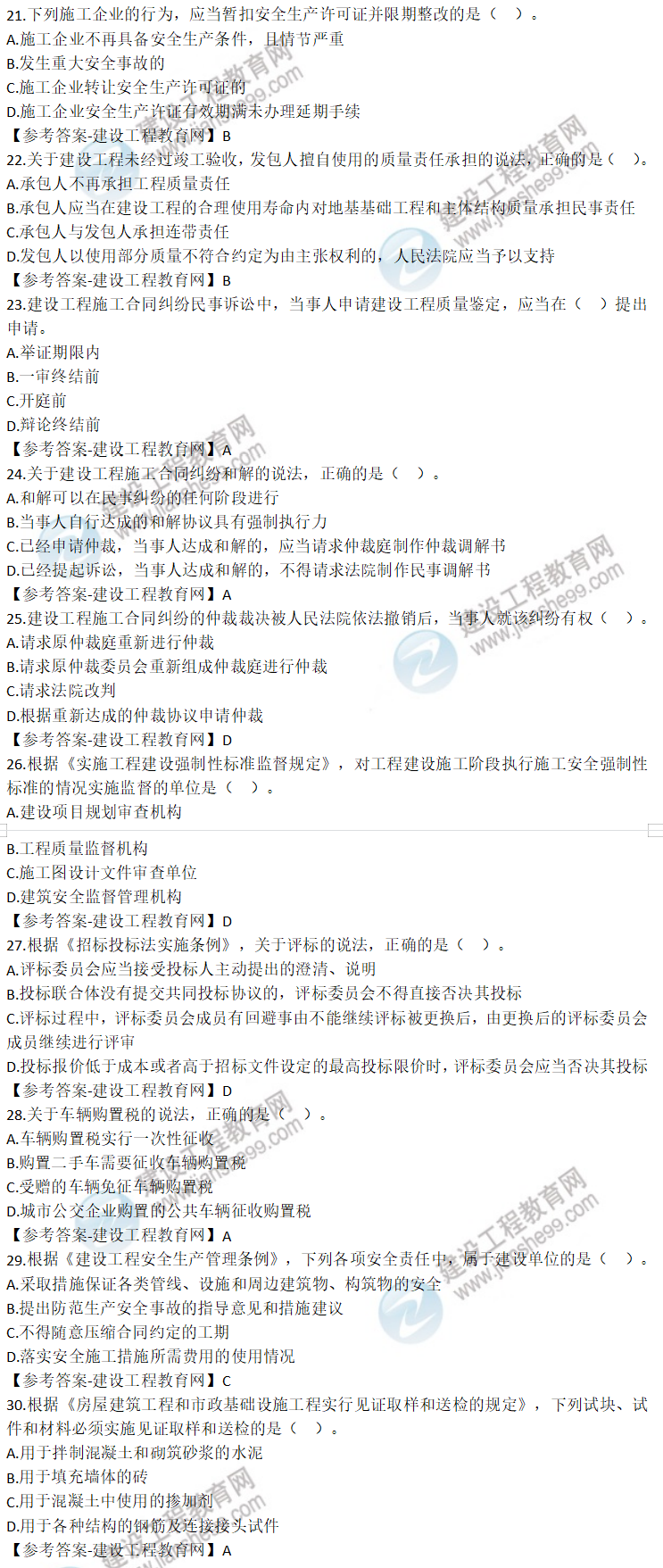 2022年一級(jí)建造師補(bǔ)考工程法規(guī)試題及答案21-30題。建設(shè)工程教育網(wǎng)考后將會(huì)根據(jù)學(xué)員反饋,及時(shí)匯總2022年一級(jí)建造師工程法規(guī)補(bǔ)考試題及答案分享給大家,并且會(huì)及時(shí)做出答案解析,希望能為廣大一建考生朋友帶來幫助。