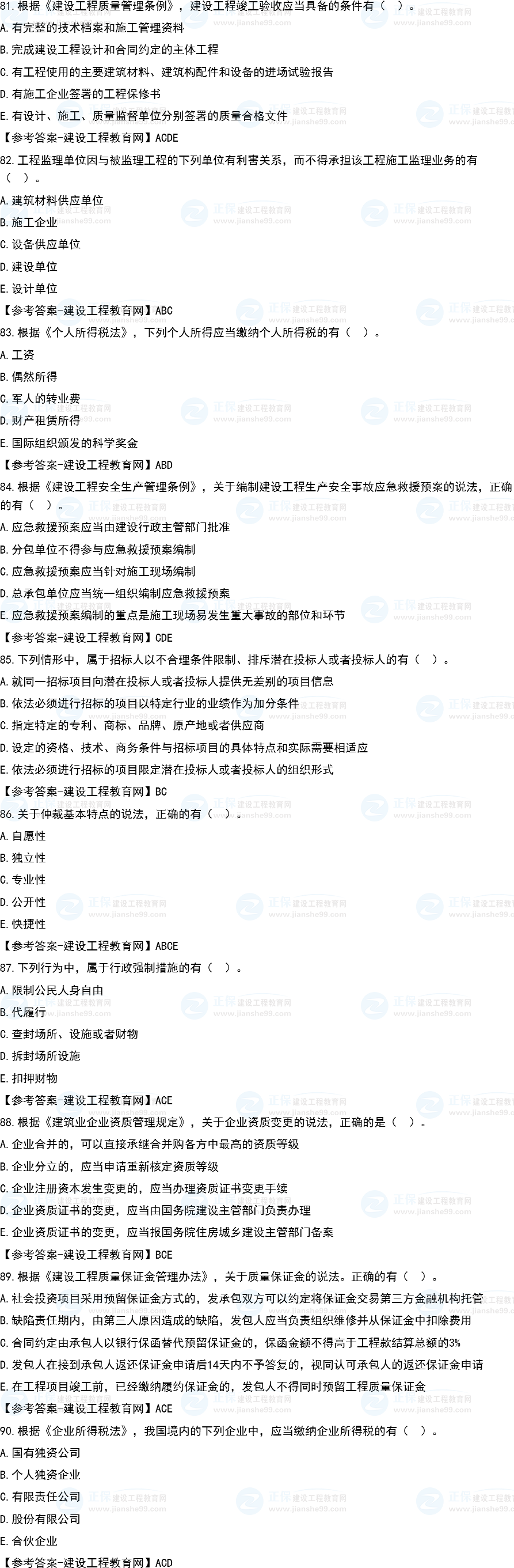 2022年一級建造師考試(補(bǔ)考)工程法規(guī)試題及答案解析81-90題