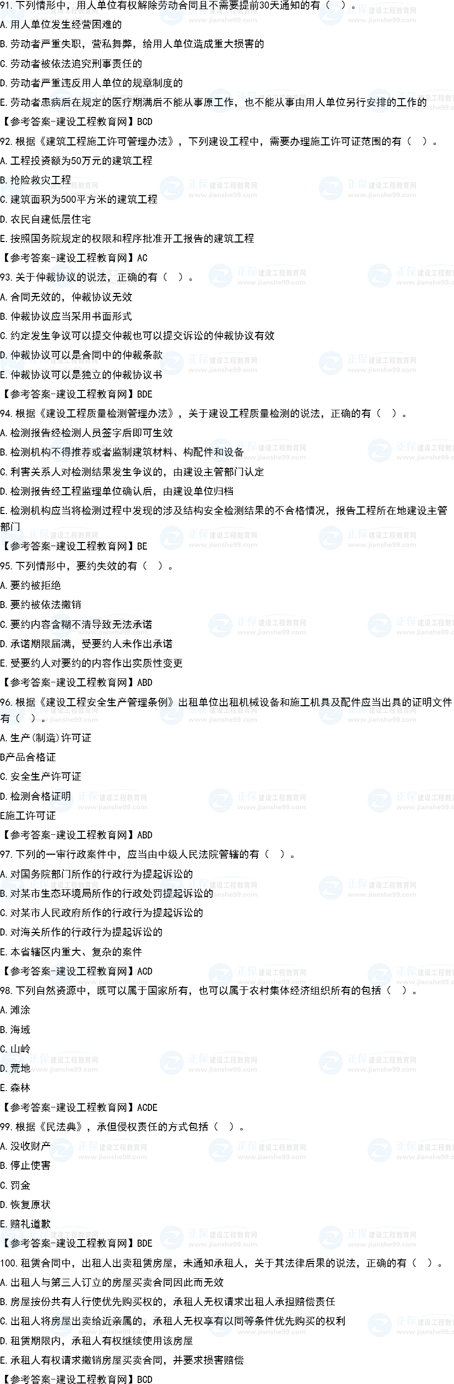 2022年一級建造師考試(補(bǔ)考)工程法規(guī)試題及答案解析91-100題