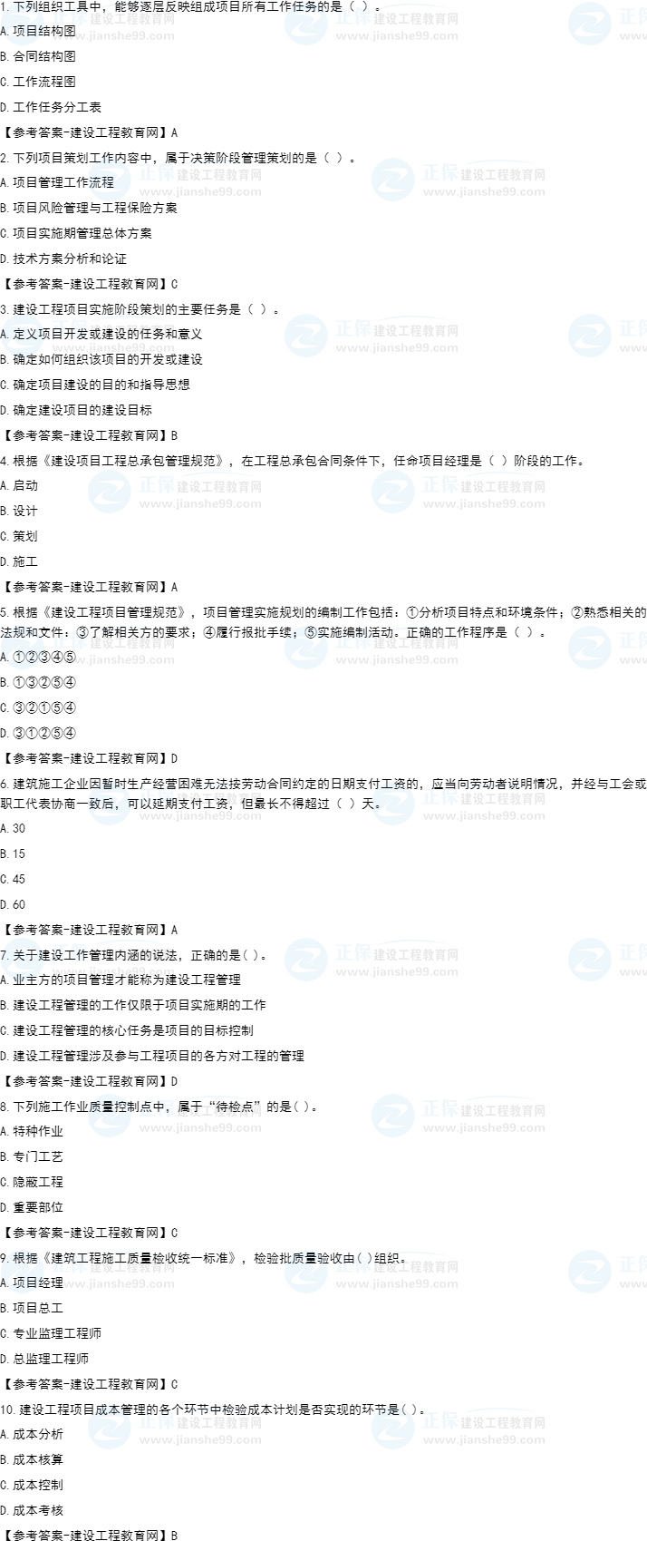 2022年一級(jí)建造師考試(補(bǔ)考)項(xiàng)目管理試題及答案解析1-10題