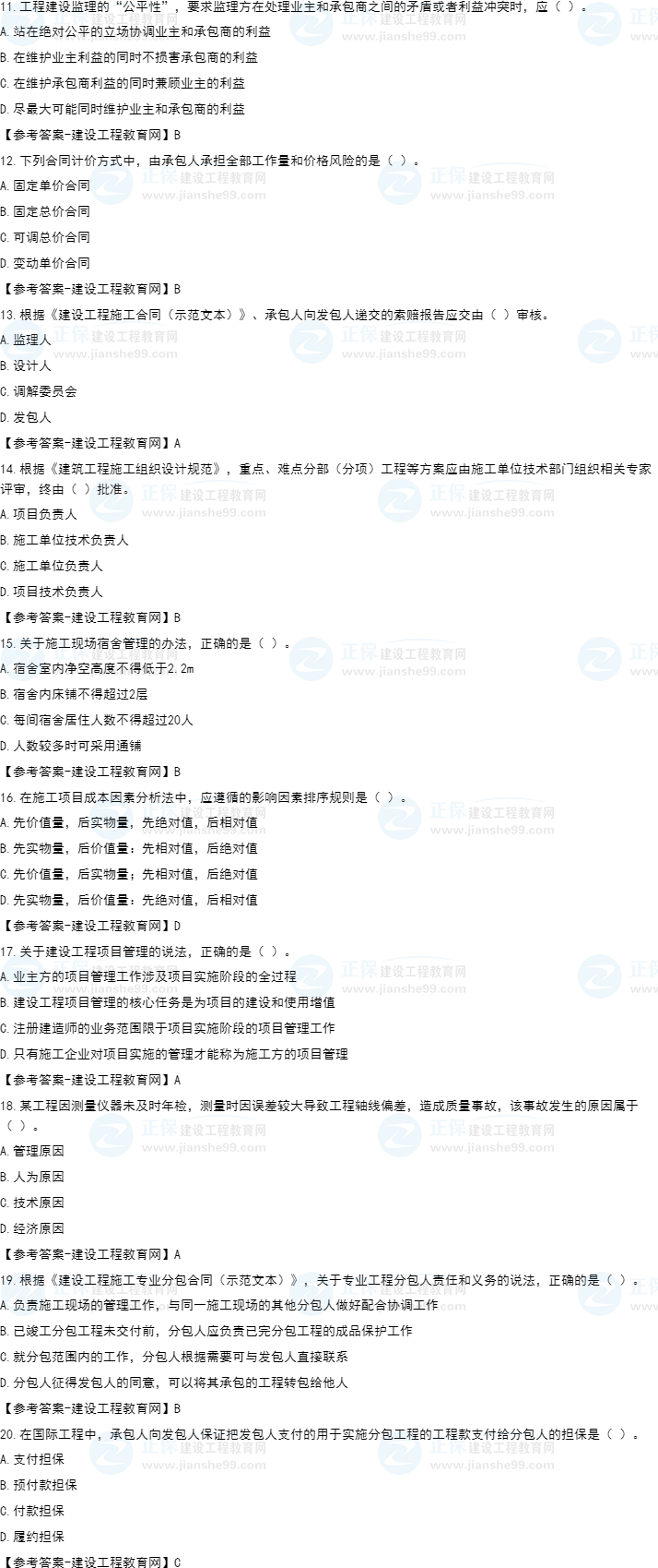 2022年一級(jí)建造師考試(補(bǔ)考)項(xiàng)目管理試題及答案解析11-20題