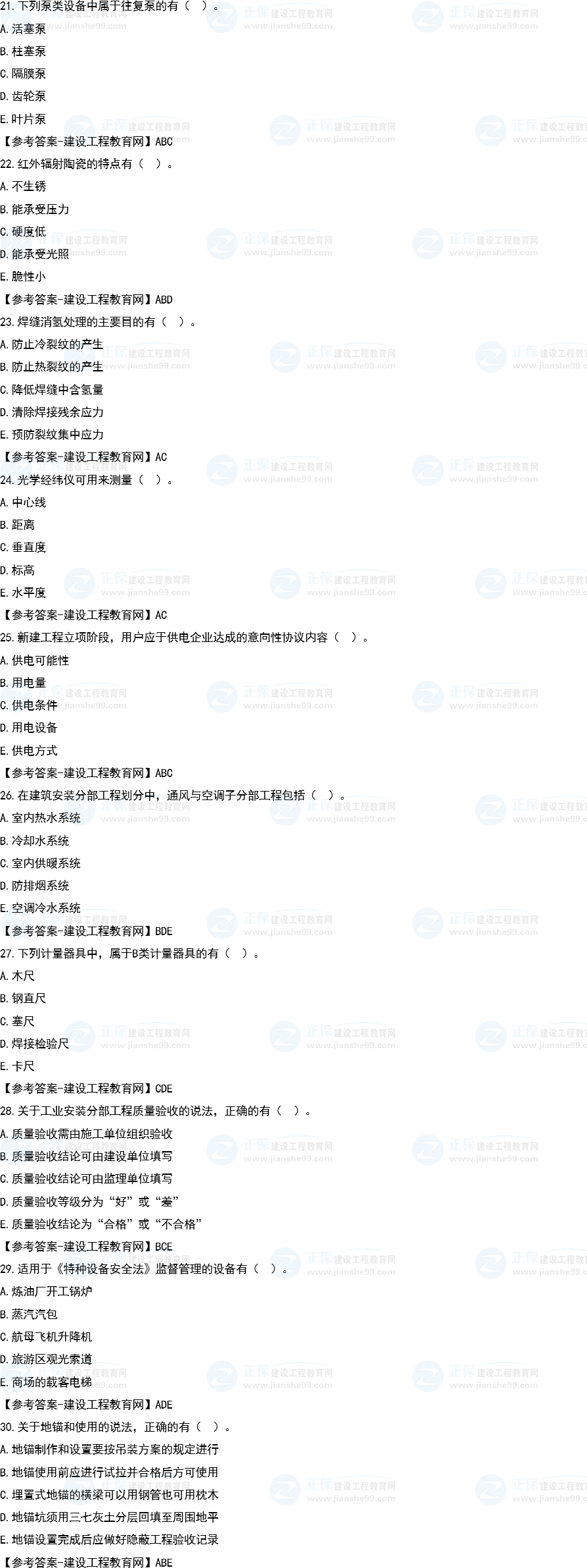 2022年一級(jí)建造師補(bǔ)考機(jī)電工程試題及答案解析21-30題。建設(shè)工程教育網(wǎng)考后將會(huì)根據(jù)學(xué)員反饋,及時(shí)匯總2022年一級(jí)建造師補(bǔ)考機(jī)電工程試題及答案解析分享給大家,并且會(huì)及時(shí)做出一級(jí)建造師答案解析,希望能為廣大一建考生朋友帶來幫助。
