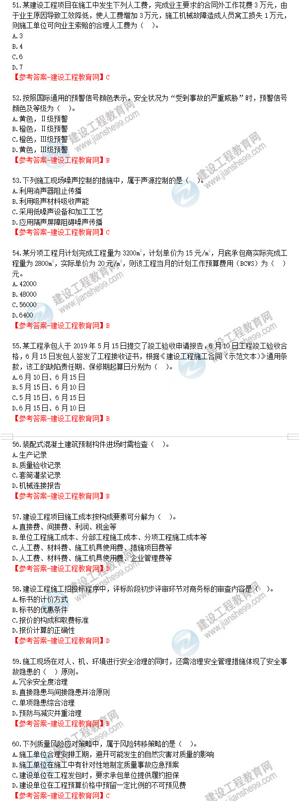 2019年一級(jí)建造師《建設(shè)工程項(xiàng)目管理》試題答案及解析51-60