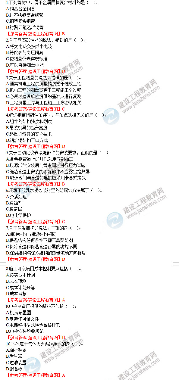 以上就是為大家分享的2019年一級(jí)建造師考試《機(jī)電工程管理與實(shí)務(wù)》試題及答案解析,建設(shè)工程教育網(wǎng)將持續(xù)關(guān)注2020年一級(jí)建造師考試的相關(guān)信息。更多2020年一級(jí)建造師考試內(nèi)容,盡在建設(shè)工程教育網(wǎng)一級(jí)建造師欄目!