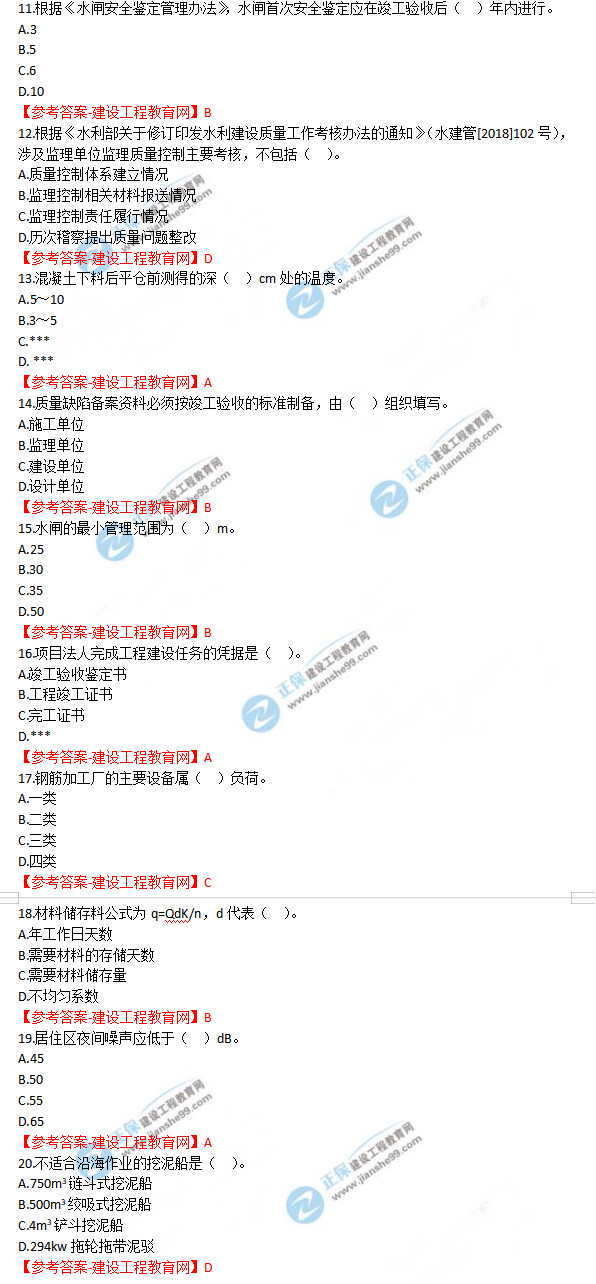 2019年一級建造師《水利實務》試題及答案解析11-20