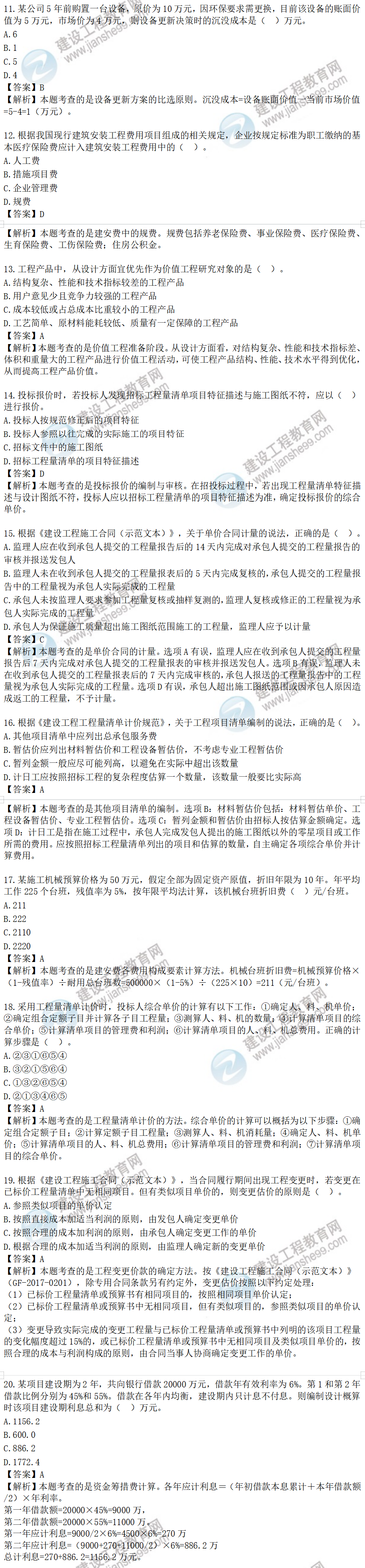 2022年一級建造師工程經(jīng)濟(jì)試題及答案11-20題,建設(shè)工程教育網(wǎng)考后將會根據(jù)學(xué)員反饋,及時匯總2022年一級建造師工程經(jīng)濟(jì)試題及答案分享給大家,并且會及時做出答案解析,希望能為廣大一建考生朋友帶來幫助。