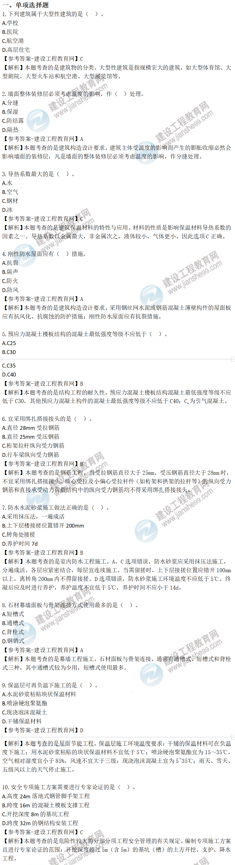 2022年一級(jí)建造師考試建筑工程試題及答案解析1-10題