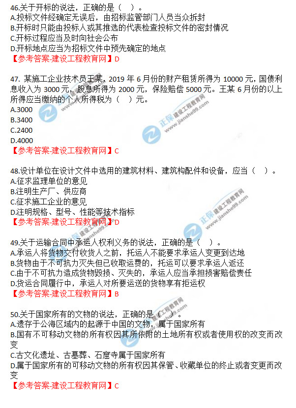 2019年一級(jí)建造師《建設(shè)工程法規(guī)及相關(guān)知識(shí)》試題答案及解析41-50