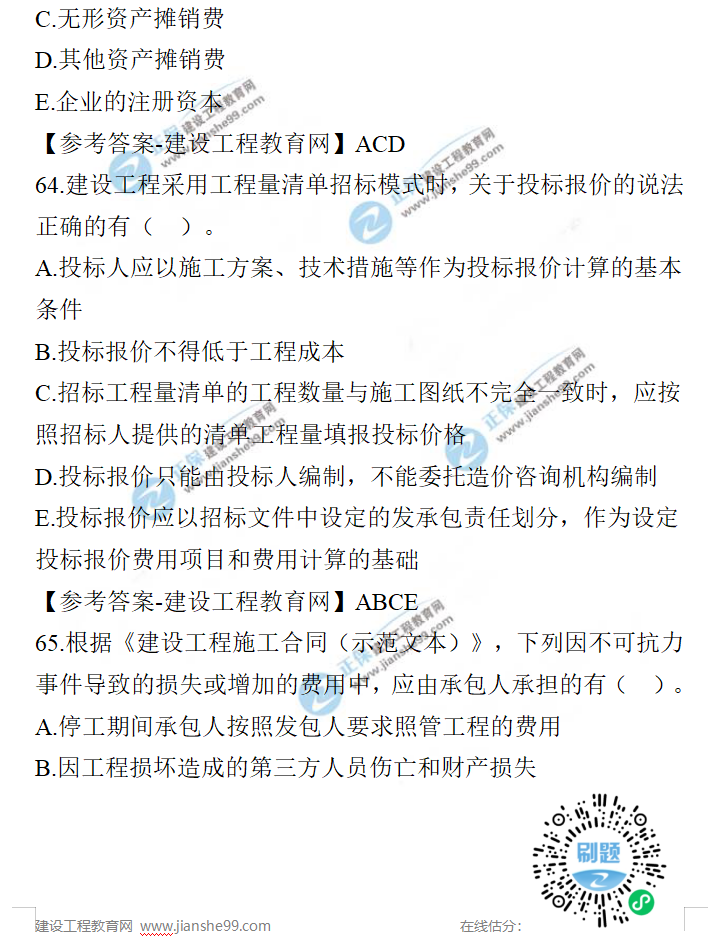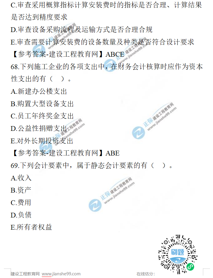 2021年一級建造師工程經(jīng)濟(jì)試題及答案61-70題