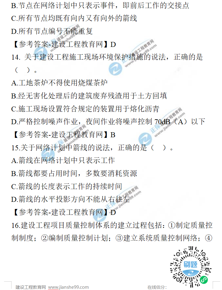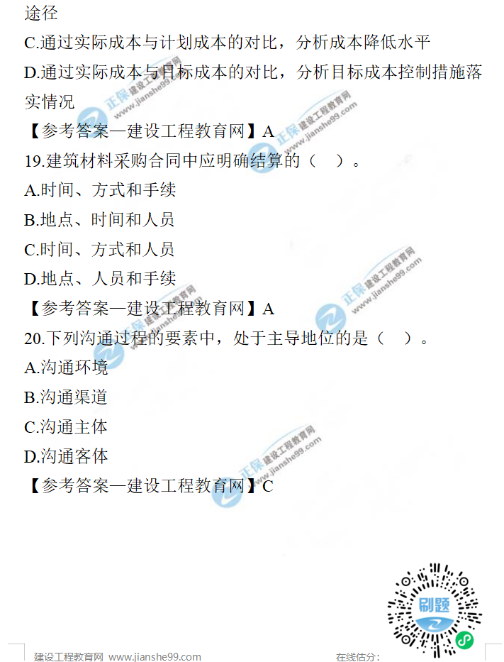 2021年一級建造師項目管理試題及答案11-20題,建設(shè)工程教育網(wǎng)考后將會根據(jù)學(xué)員反饋,及時匯總2021年一級建造師項目管理試題及答案分享給大家,并且會及時做出答案解析,希望能為廣大一建考生朋友帶來幫助。