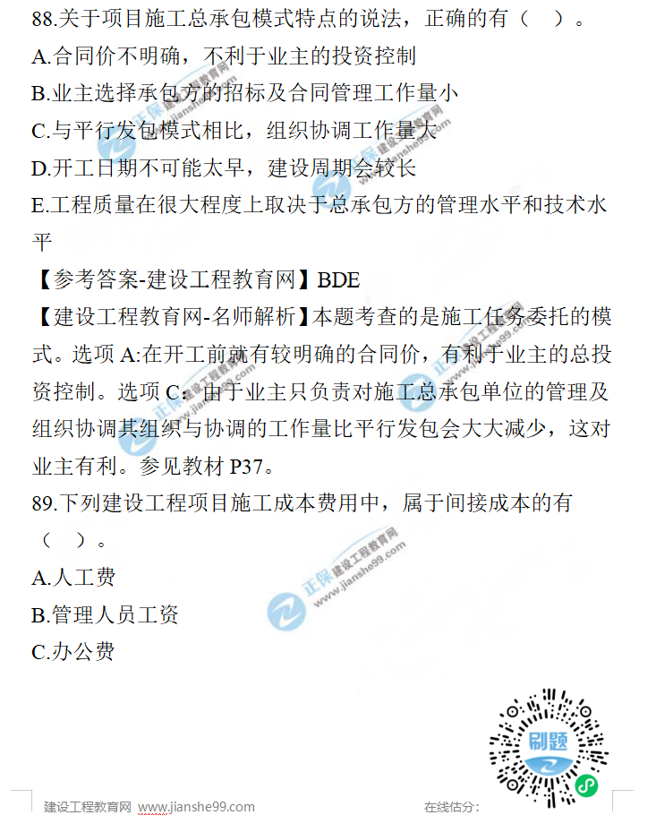 2021年一級(jí)建造師項(xiàng)目管理試題及答案81-90題,建設(shè)工程教育網(wǎng)考后將會(huì)根據(jù)學(xué)員反饋,及時(shí)匯總2021年一級(jí)建造師項(xiàng)目管理試題及答案分享給大家,并且會(huì)及時(shí)做出答案解析,希望能為廣大一建考生朋友帶來幫助。