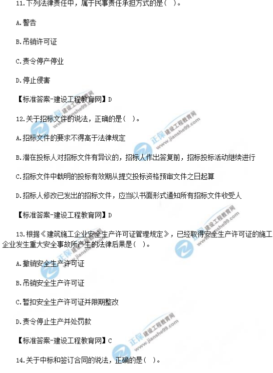 2018年一級建造師《法規(guī)》試題答案及解析(11-20),由考生回憶題干,建設(shè)工程教育網(wǎng)一級建造師考試教研組團提供參考答案,供廣大考生進行參考!點擊查看2019年一級建造師招生方案>>