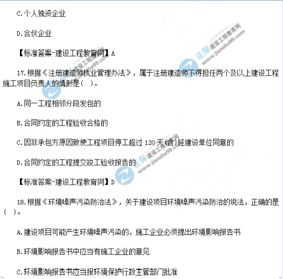 2018年一級建造師《法規(guī)》試題答案及解析(11-20)