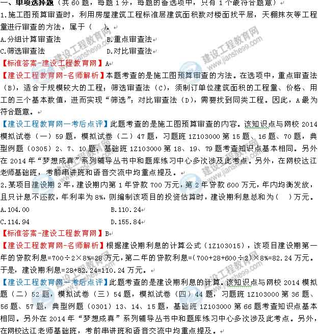 2014一級(jí)建造師工程經(jīng)濟(jì)答案及解析由老師整理而成,部分網(wǎng)站未經(jīng)許可擅自轉(zhuǎn)載、抄襲,造成內(nèi)容有所缺失或錯(cuò)誤,請(qǐng)大家以建設(shè)工程教育網(wǎng)發(fā)布為準(zhǔn)!