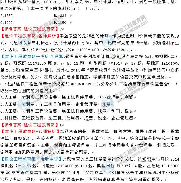 2014一級(jí)建造師《工程經(jīng)濟(jì)》考生試題及答案第1-7題,更多試題及答案在網(wǎng)頁下方