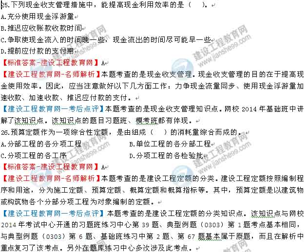 2014一級(jí)建造師工程經(jīng)濟(jì)答案及解析由老師整理而成,部分網(wǎng)站未經(jīng)許可擅自轉(zhuǎn)載、抄襲,造成內(nèi)容有所缺失或錯(cuò)誤,請(qǐng)大家以建設(shè)工程教育網(wǎng)發(fā)布為準(zhǔn)!