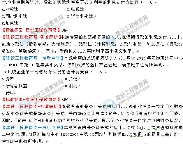 【老師解析】2014年一建經(jīng)濟(jì)試題及答案(73-78題)