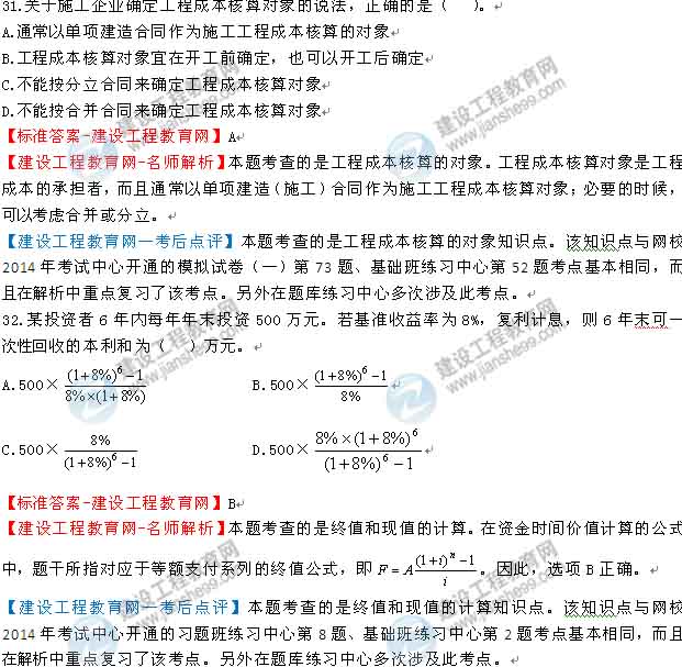 2014一級(jí)建造師《工程經(jīng)濟(jì)》考生試題及答案第28-34題,更多試題及答案在網(wǎng)頁下方