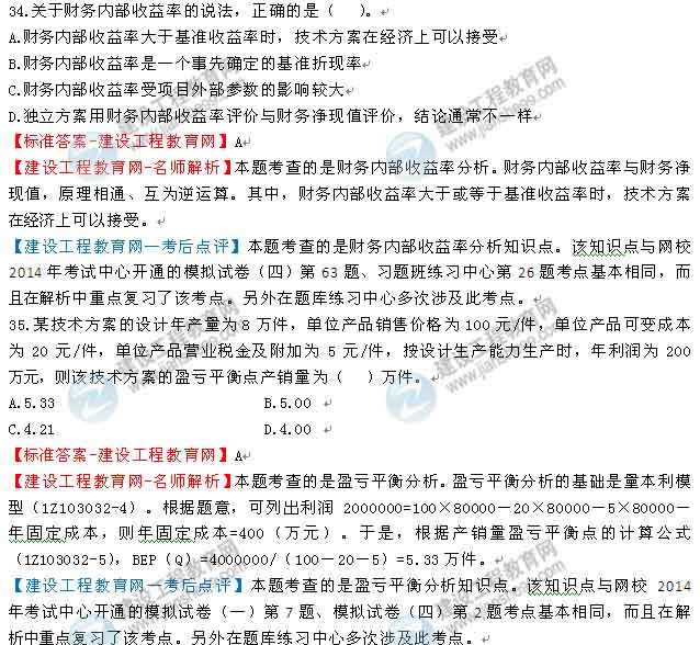 2014一級(jí)建造師工程經(jīng)濟(jì)答案及解析由老師整理而成,部分網(wǎng)站未經(jīng)許可擅自轉(zhuǎn)載、抄襲,造成內(nèi)容有所缺失或錯(cuò)誤,請(qǐng)大家以建設(shè)工程教育網(wǎng)發(fā)布為準(zhǔn)!