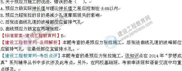 【建設(shè)工程教育網(wǎng)-考后點評】本題考查的是模板、支架和拱架的制作與安裝。該知識點在2014年“夢想成真”系列輔導(dǎo)叢書中多次涉及此考點。另外,在網(wǎng)?;A(chǔ)班,考前串講班和語音交流中均重點提及。